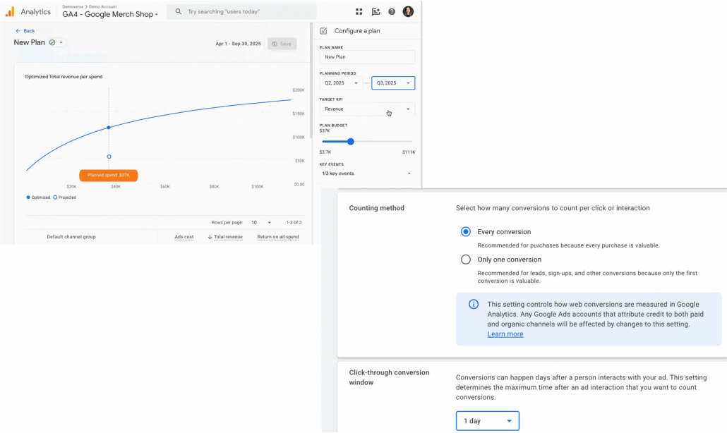 1. GA4: Beta-Funktionen für Budgetplanung & Cross-Channel-Reporting